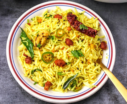 Don't serve the lemon rice as soon as you finish cooking. Let it rest for about 15-20mins and then serve it with potato fry/potato chips.